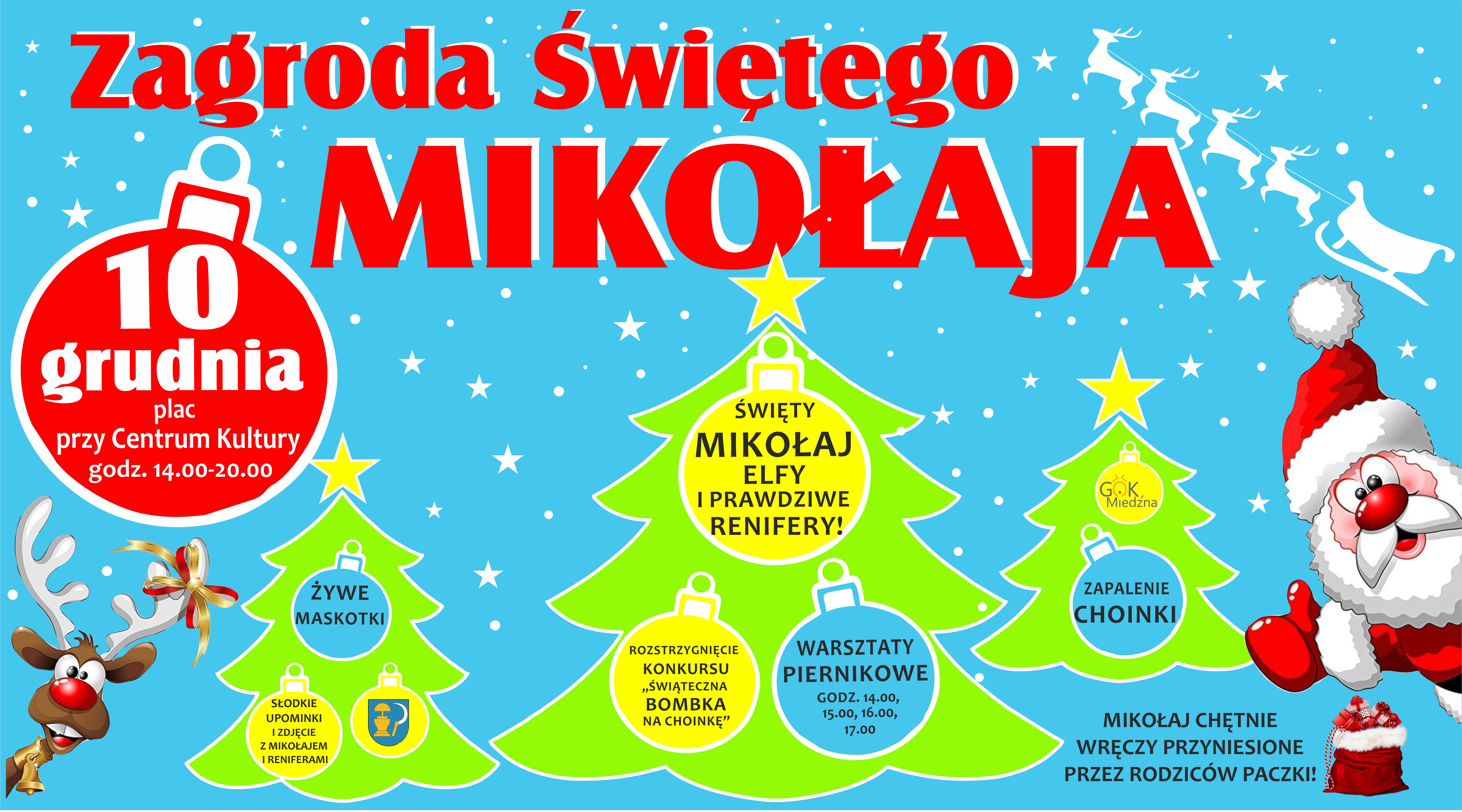 W tym roku zapraszamy wszystkie dzieci do Zagrody przy Centrum Kultury gdzie gospodarzem będzie Święty Mikołaj we własnej osobie, a towarzyszyć mu będą elfy i najprawdziwsze, żywe renifery. Każdy dorosły może stać się pomocnikiem Mikołaja i dostarczyć mu paczkę, którą ten wręczy wskazanemu dziecku. To będzie świetna okazja, by zapewnić swoim pociechom dużo radości. Przygotujcie się na radosne chwile, pełne śmiechu i magii świąt!